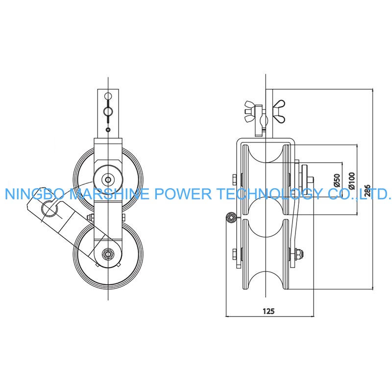 Deze MARSHINE kabelmontage katrol kabelvezel OPGW montagerollen zijn ontworpen met duurzame nylon of polymeer gecoate schijven en afgedichte lagers om soepel te draaien, waardoor het risico op kabelslijtage wordt geminimaliseerd terwijl de bespanning wordt gerespecteerd.
