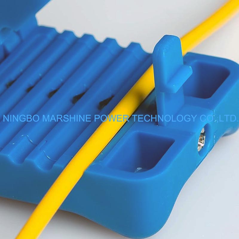 Vijf precisiegaten voor bufferbuizen en vezelbuizen van 2,6 tot 6,8 mm. Onze MARSHINE D5 Fiber Optic Large Five-Hole Tube Slitter biedt één gereedschapsoplossing voor het strippen van verschillende soorten glasvezelkabels.