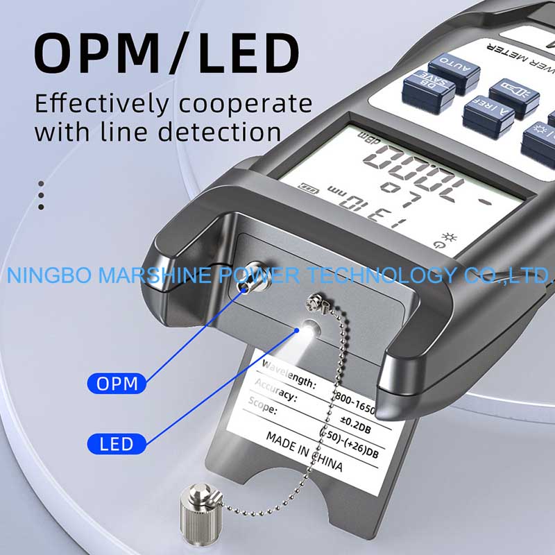 Onze MARSHINE Fiber Optical Troubleshoot Tool Power Meter OPM Tester (OPM Tester) is een krachtige testapparatuur die toepasbaar is voor het meten van het vermogensniveau van een optisch signaal in een glasvezelsysteem. Het biedt betrouwbare en nauwkeurige resultaten, die effectief kunnen worden gebruikt door technici bij het verifiëren van signaalsterkte, foutisolatie en prestatiebeoordeling van glasvezelsystemen. Het kleine formaat en de eenvoudige bediening maken hem geschikt voor veldwerk, netwerkingenieurs en onderhoudspersoneel in telecommunicatie-, datacenter- en CATV-systeemomgevingen.