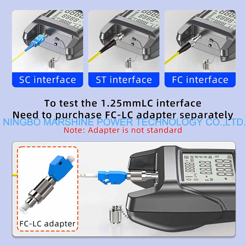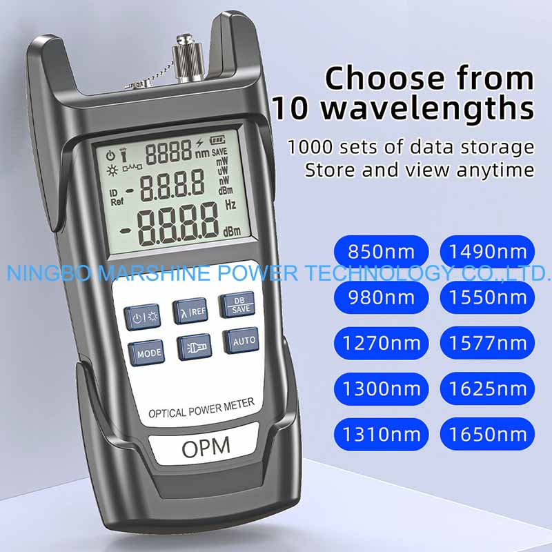 De MARSHINE Fiber Optical Troubleshoot Tool Power Meter OPM Tester kan worden gebruikt voor het testen van alle standaard optische golflengten van een glasvezelnetwerk (bijvoorbeeld 850 nm, 1310 nm, 1490 nm en 1550 nm), toepasbaar op zowel multi-mode als single-mode.