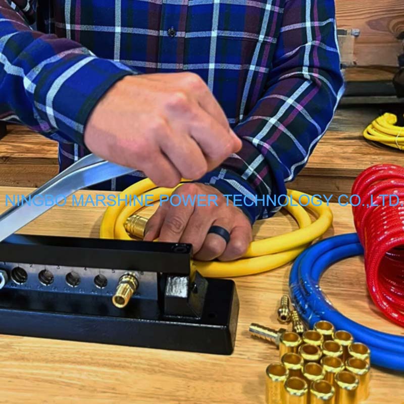 De MARSHINE Heavy-Duty Krimptang MAR-0081 is geschikt voor gangbare luchtslangmaten zoals 1/4", 5/16" en 3/8", inclusief de PVC- en de rubberen slangen.