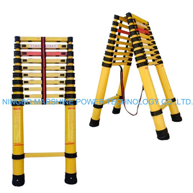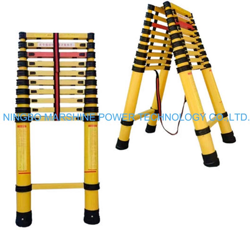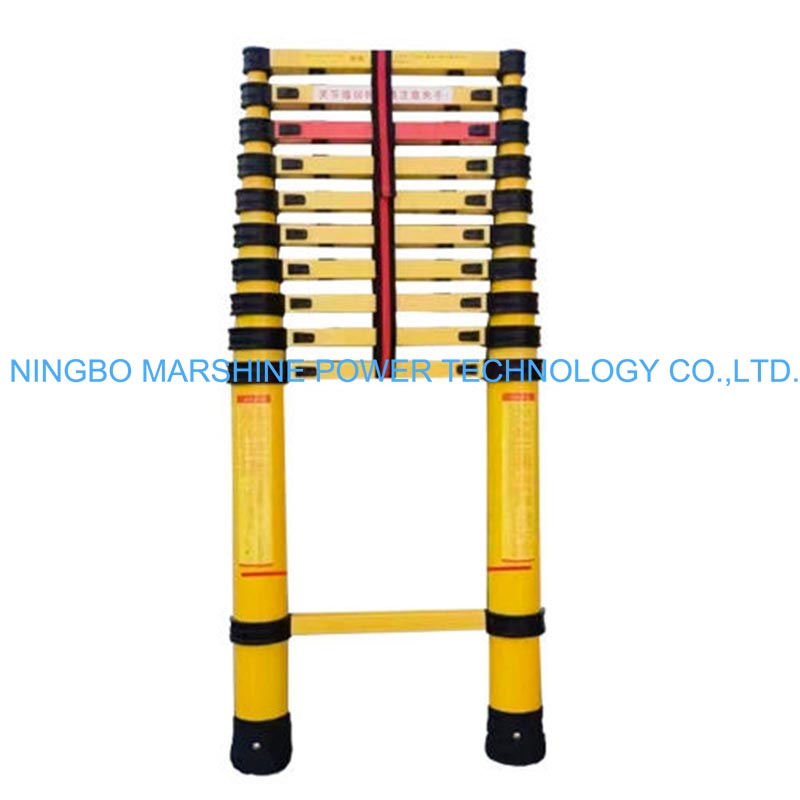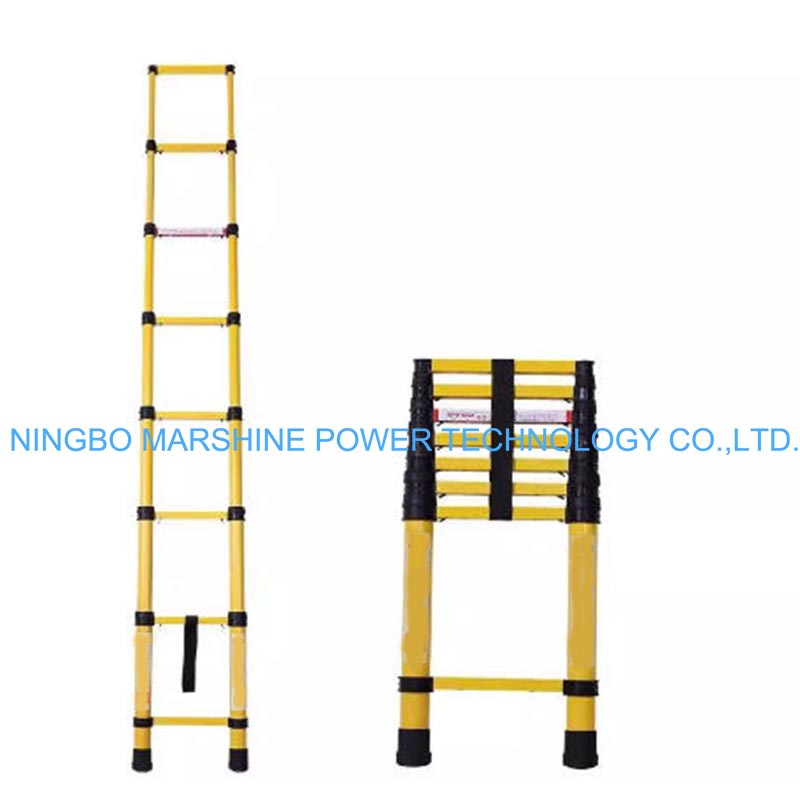 MARSHINE Lichtgewicht glasvezelverlenging Telescopische ladder Telescopische ladder is een professioneel werkinstrument voor veiligheid, betrouwbaarheid en toepasbaarheid in de werkomgeving. Het is gemaakt van hoogwaardig glasvezelversterkt plastic en de goede isolatieprestaties kunnen de gebruiker effectief tegen elektrische schokken beschermen bij elektrische werkzaamheden en algemene werkzaamheden. Deze telescopische ladder heeft 8 verstelbare segmenten, waardoor hij de werkhoogte snel kan veranderen, terwijl alle secties afsluitbaar zijn om de veiligheid te garanderen.