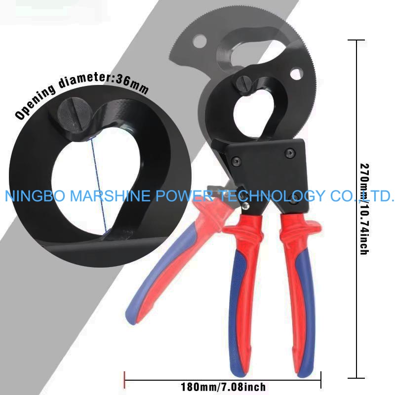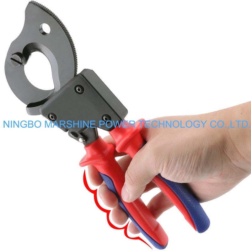 Onze MARSHINE rateltype kabelschaar met scherpe gepolijste rand kan op grote schaal worden gebruikt bij het knippen van gepantserde en andere zware stroomkabels tijdens installatie- of reparatiewerkzaamheden.