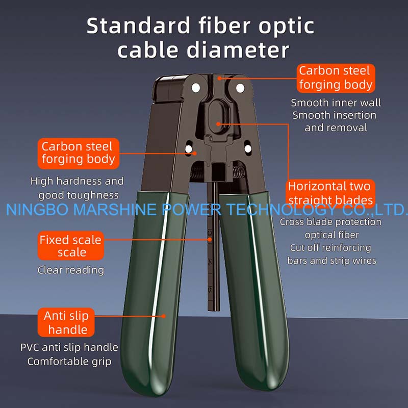 Deze MARSHINE standaard striptang voor glasvezelkabels is een nauwkeurig handgereedschap dat speciaal is ontworpen voor het voorbereiden van glasvezelkabels voor installatie-, splitsings- en beëindigingswerkzaamheden. Met een ergonomische vorm en een hoogwaardig gelegeerd stalen messensysteem zorgt het voor een uniforme strook van de coating zonder de delicate vezelkern of buffermantel te beschadigen. Als efficiënt hulpmiddel dat zowel geschikt is voor veldwerk als voor gebruik in de werkplaats, is het op maat gemaakt om te voldoen aan de eisen van de hedendaagse glasvezelinstallatie, waar nauwkeurigheid en betrouwbaarheid van cruciaal belang zijn.
