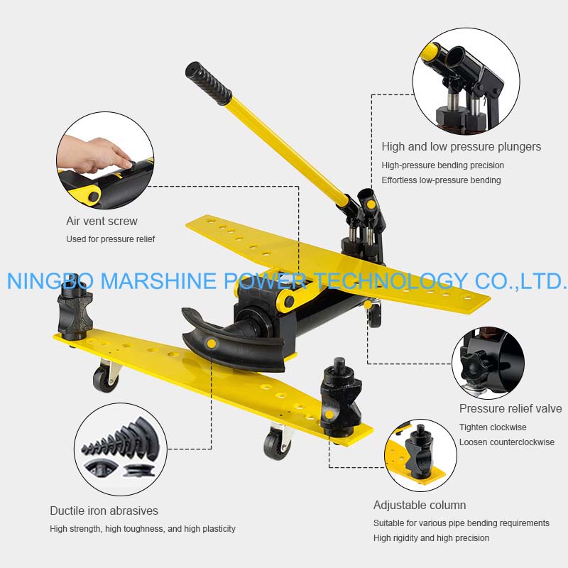 Deze MARSHINE SWG handmatige hydraulische pijpbuigapparatuur maakt een verscheidenheid aan buigmatrijzen mogelijk voor verschillende pijpdiameters die worden gebruikt in constructie- en elektrische werkzaamheden, enz.