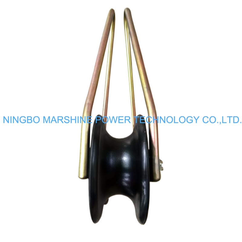 De MARSHINE montagerol met twee schalen boven geïsoleerde lijn en gegalvaniseerd stalen frame is een uniek hulpmiddel voor de installatie en geleiding van geïsoleerde bovengrondse geleiders. Met een stevig gegalvaniseerd stalen frame en dubbele (tweeschalige) nylon rollen zorgt deze montagerol ervoor dat de kabel soepel kan rollen met minder wrijving, wat op zijn beurt schade aan de kabelmantel minimaliseert. Ontworpen voor betrouwbare prestaties bij de aanleg van hoogspanningslijnen, biedt het stabiele ondersteuning en eenvoudige bediening van kabels voor het bespannen van bovengrondse laag- en middenspanningslijnen. Dankzij het kleine formaat en de robuuste constructie is het een broodnodige aanwinst voor nutsbedrijven en elektriciens die werkzaamheden aan luchtkabels uitvoeren.