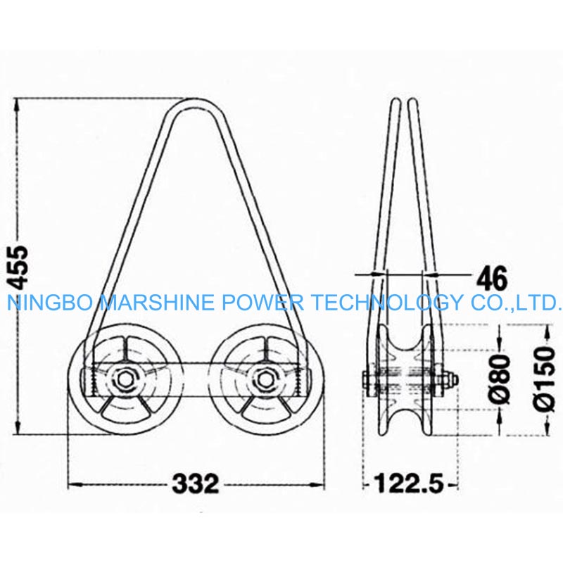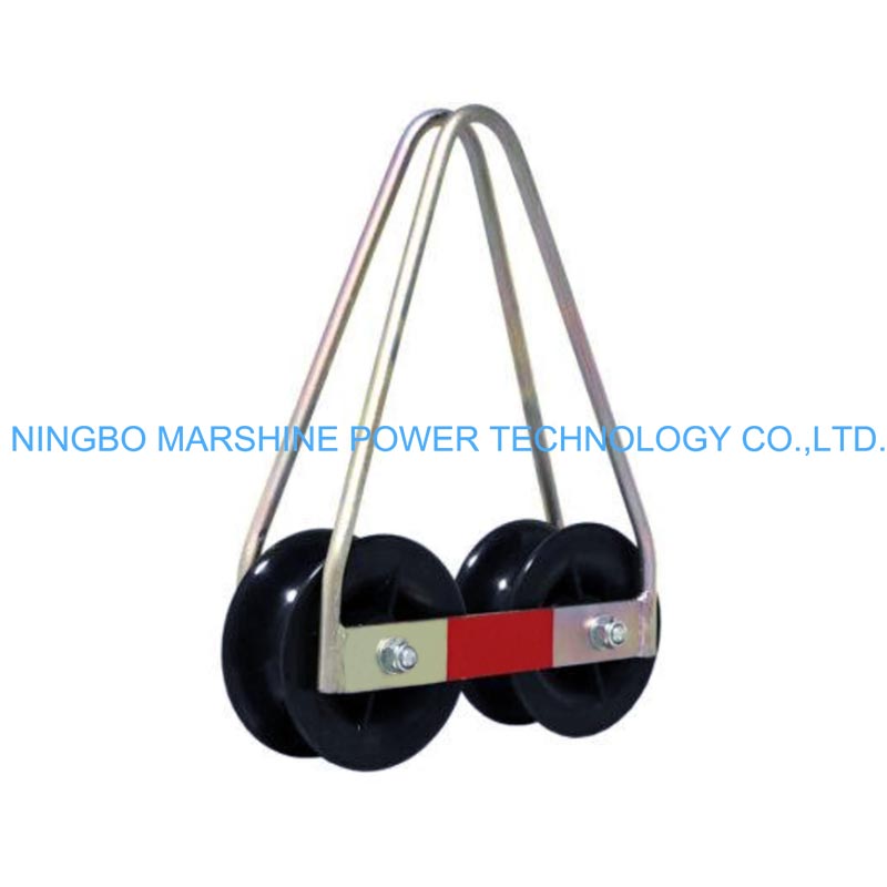 Onze MARSHINE bovenleidingsrol met twee schalen, gegalvaniseerd stalen frame en montagerol is toepasbaar voor het bouwen en repareren van bovengrondse elektriciteitsleidingen.